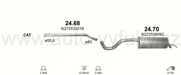 Trubka střední , kód: 24.68 Příklad použití: Skoda Roomster 1.4 TDi/1.6 TDi/ 1.9 TDi, kódy Bosal Walker aj.: 18.050 10471 6Q7253201B 6Q7253201C |
