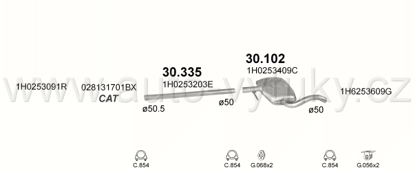 Trubka střední , kód: 30.335 Příklad použití: VW Golf II III 1.6; 1.8; 1.9TD 85-98/Jetta 85-88/Passat 88-96/Vento 91-98, kódy Bosal Walker aj.:... |