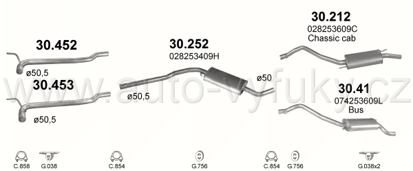 Tlumič výfuku střední , kód: 30.252 Příklad použití: VW Transporter T4 1.9 TD 10.92-12.95, kódy Bosal Walker aj.: 04.089 58.6072 288-229 95 11 7941... |
