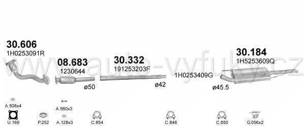 Trubka střední , kód: 30.332 Příklad použití: VW Golf II III 1.6 kat; 1.8; 1.9D 87-98/Jetta 85-92/Passat 88-91/Vento 94-98, kódy Bosal Walker aj.:... |