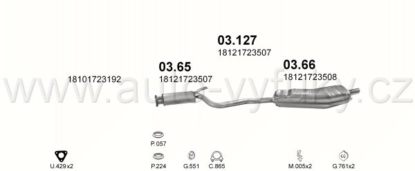 Výfuková soustava , kód: 03.127 Příklad použití: BMW 520i 2.0i -24V 90-96 (03.65+03.66), kódy Bosal Walker aj.: 12.032 08.6032 08.7038 247-251...