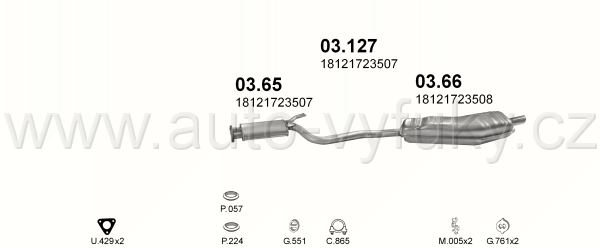 Výfuková soustava , kód: 03.127 Příklad použití: BMW 520i 2.0i -24V 90-96 (03.65+03.66), kódy Bosal Walker aj.: 12.032 08.6032 08.7038 247-251... |