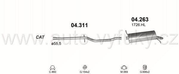 Trubka střední , kód: 04.311 Příklad použití: Citroen C5 1.8i -16V 2.0i-16V 2.0 HPi-16V 00-02, kódy Bosal Walker aj.: 09.076 10.5037 889-537 465021... |