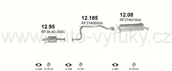 Tlumič výfuku střední , kód: 12.95 Příklad použití: Mazda 626 2.0D HB 87-91/kombi 88-96, kódy Bosal Walker aj.: 171-391 210419 14622 RF39-40-300B... |
