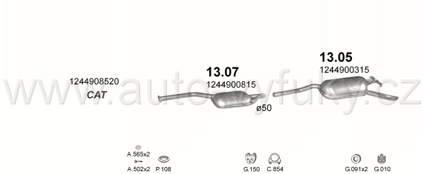 Tlumič výfuku střední , kód: 13.07 Příklad použití: Mercedes W124 85-93 200TD/250D/TD, kódy Bosal Walker aj.: 28.6016 175-185 23.184.83 374019 P3625... |