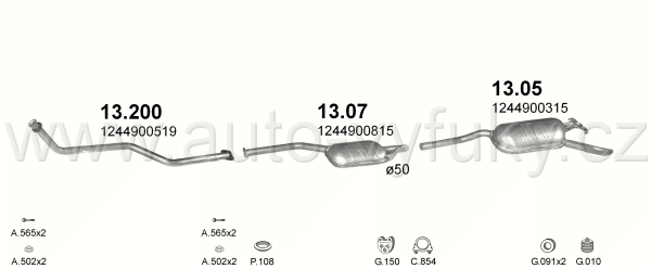 Tlumič výfuku střední , kód: 13.07 Příklad použití: Mercedes W124 85-93 200TD/250D/TD, kódy Bosal Walker aj.: 28.6016 175-185 23.184.83 374019 P3625...