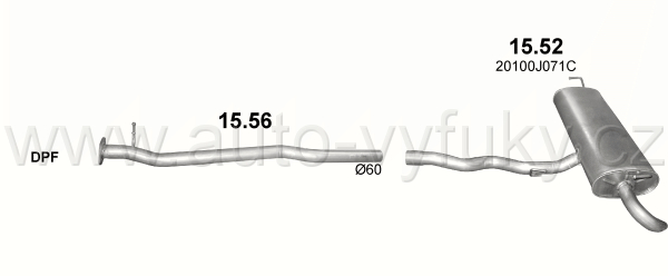 Trubka střední , kód: 15.56 Příklad použití: Nissan Qashqai 2.0 dCi Turbo Diesel, kódy Bosal Walker aj.: 850-941 10586 20100-JD700 20100-JD71A |