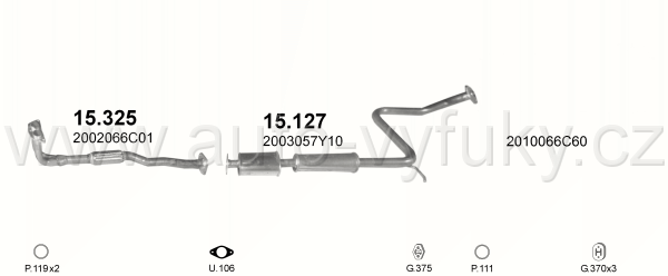 Sběrné potrubí , kód: 15.325 Příklad použití: Nissan Primera 90-96 2.0D, kódy Bosal Walker aj.: 840-397 51.45.01 DN364X 142777 01.18820 NS53276... |