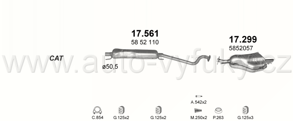 1_17.561 Tlumič výfuku střední OPEL ASTRA G 2.0 D HATCHBACK 4/1998-9/2004 1995ccm 60kW / 82HP KAT 2.0 Di
