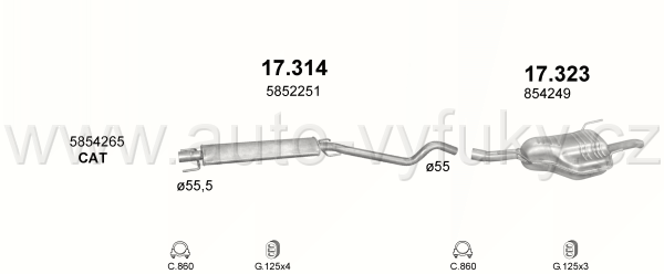 Tlumič výfuku střední , kód: 17.314 Příklad použití: Opel Astra G 2.2 DTi 02-03 hatch. (roztłoczenie), kódy Bosal Walker aj.: 284-323 056076 53.29.06...