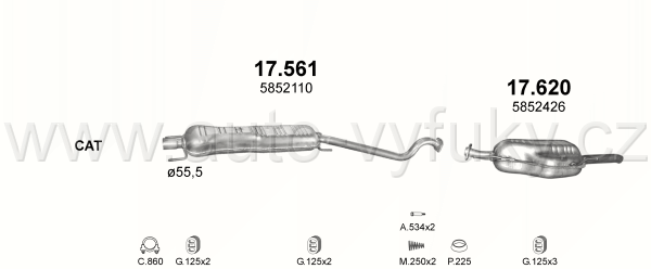 Tlumič výfuku střední , kód: 17.561 Příklad použití: Opel Astra G 2.0 Di TD; 2,0 DTi TD 04/98 - 09/04, kódy Bosal Walker aj.: 05.118 34.6081 284-343... |