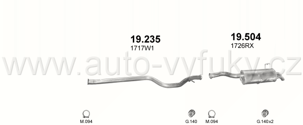 Tlumič výfuku koncový , kód: 19.504 Příklad použití: Peugeot 607 2.2HDI TD 12/99 -04, kódy Bosal Walker aj.: 36.7091 190-953 19.9.53 P4857 27.043... |