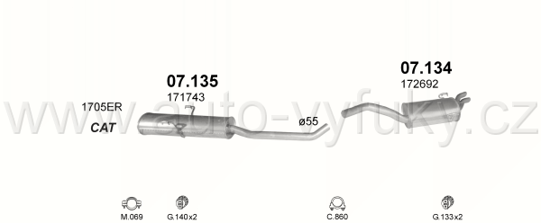 Tlumič výfuku koncový , kód: 07.134 Příklad použití: Citroen Evasion/Fiat Ulysse 94- 1.9TD-2.0i Turbo, kódy Bosal Walker aj.: 09.067 12.7110 135-063...