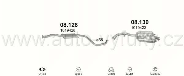 Tlumič výfuku střední , kód: 08.126 Příklad použití: Ford Escort 1.6; 2.0i kat 92-96/Orion 92-93, kódy Bosal Walker aj.: 07.102 14.6089 285-849... |