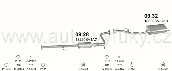 Tlumič výfuku koncový , kód: 09.32 Příklad použití: Honda Accord 1.8 16V 96-98 SDN, kódy Bosal Walker aj.: 281-863 HA254B 250422 01.60552 HD33431... |