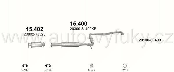 Tlumič výfuku náhrada , kód: 15.402 Příklad použití: Nissan Primera 2.0i 16V 06/99-01/02, kódy Bosal Walker aj.: 099-818 099-563 755337 751872... |