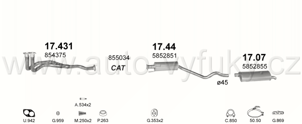 Sběrné potrubí , kód: 17.431 Příklad použití: Opel Vectra 88-95/Calibra 90-97/Astra 91-96, kódy Bosal Walker aj.: 753-169 08.190.73 301082 01.10243... |