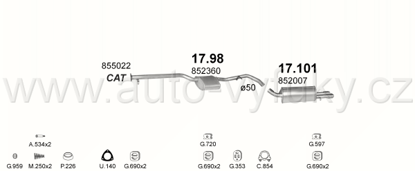 Tlumič výfuku střední , kód: 17.98 Příklad použití: Opel Calibra 2.0 90-92, kódy Bosal Walker aj.: 34.6074 283-203 08.291.80 08.191.81 033022 P4503...