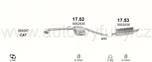 Tlumič výfuku střední , kód: 17.52 Příklad použití: Opel Omega 2.0i X20SE 8V kombi kat 94-, kódy Bosal Walker aj.: 05.104 34.6045 283-753 07.196.81... |