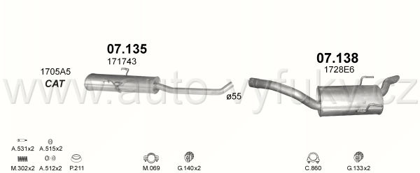 Tlumič výfuku koncový , kód: 07.138 Příklad použití: Citroen Evasion/Fiat Ulysse 2,0 ie/1.9TD/2.1TD, kódy Bosal Walker aj.: 09.065 12.7029 135-061...