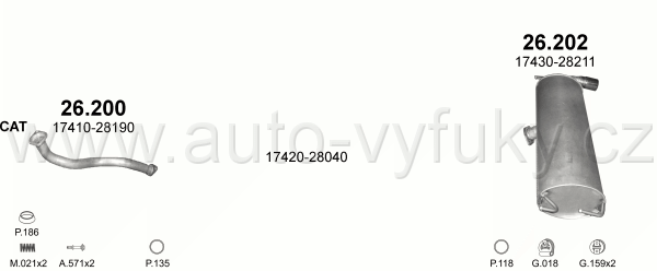 Tlumič výfuku koncový , kód: 26.202 Příklad použití: Toyota RAV 4 2.0 16V 4X4 05/00-07/03 ; 2.0 TD 4X4 05/01-10/05, kódy Bosal Walker aj.: 54.7013... |