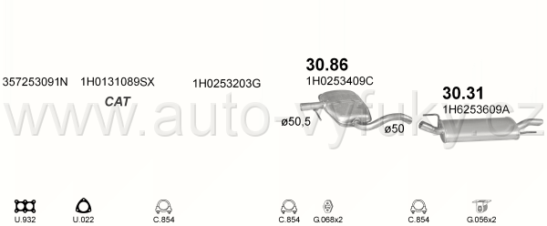 Tlumič výfuku koncový , kód: 30.31 Příklad použití: VW Golf III 1.6i/1.8i/2.0/1.9D/1.9TD 8V kat hatch., cabrio 91-01, kódy Bosal Walker aj.: 03.044... |