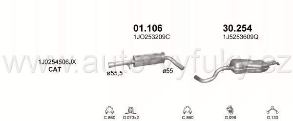 Tlumič výfuku střední , kód: 01.106 Příklad použití: Audi A3 96-03 1.8 Turbo/ Seat Toledo 98-05 1.8 Turbo; 2.3 V5/ Skoda Octavia 98-05 1.8 Turbo/ VW... |