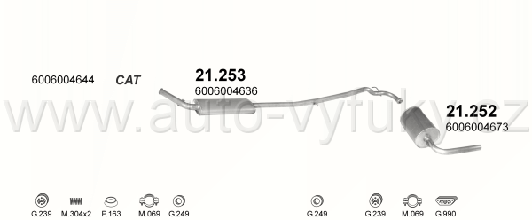 Tlumič výfuku střední , kód: 21.253 Příklad použití: Renault Trafic 2.1D LWB3200mm 94-97, kódy Bosal Walker aj.: 292-225 RN785X 261002 01.50537... |