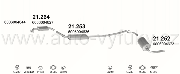 Tlumič výfuku střední , kód: 21.264 Příklad použití: Renault Trafic 2.1D 94-97, kódy Bosal Walker aj.: 22515 60 06 004 627 e3 03 1111