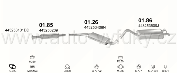 Tlumič výfuku střední , kód: 01.85 Příklad použití: Audi 100/200 84-91 2.2-2.3, kódy Bosal Walker aj.: 06.015 105-969 AU120J 210007 AU03310 12891 443... |