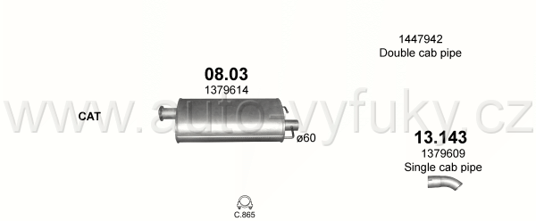 Tlumič výfuku střední , kód: 08.03 Příklad použití: Ford Transit 2.2 TDCi Turbo Diesel, kódy Bosal Walker aj.: 154-459 332132 332095 01.50829 1379614... |