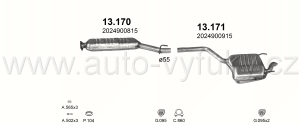 Tlumič výfuku koncový , kód: 13.171 Příklad použití: Mercedes C-220 2.2D / C-250 2.5D 93-96, kódy Bosal Walker aj.: 01.052 01.038 28.7029 278-397... |