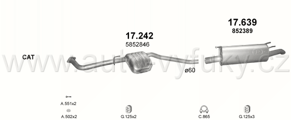 Tlumič výfuku koncový , kód: 17.639 Příklad použití: Opel Omega B 2.0 DTi 09/97-09/00 , 2.2 DTi 09/00-07/03 , 2.5 Turbo Diesel 01/00-09/01 , 2.5 DTi... |