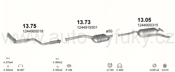 Tlumič výfuku přední , kód: 13.75 Příklad použití: Mercedes 124 200E; 230 2,0; 2,3 85-92, kódy Bosal Walker aj.: 28.2008 282-183 23.184.80 374057... |