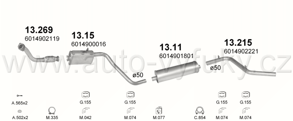 Sběrné potrubí , kód: 13.269 Příklad použití: Mercedes 207D-409D 85-89, kódy Bosal Walker aj.: 02.008 736-159 85.16.01 07.077 MZ317D 110116 01.18500... |