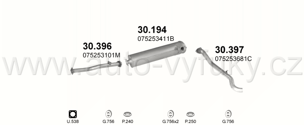Tlumič výfuku střední , kód: 30.194 Příklad použití: VW LT 86-89, kódy Bosal Walker aj.: 04.104 233-555 72.73.06 08326 075253411B e3 030713 |