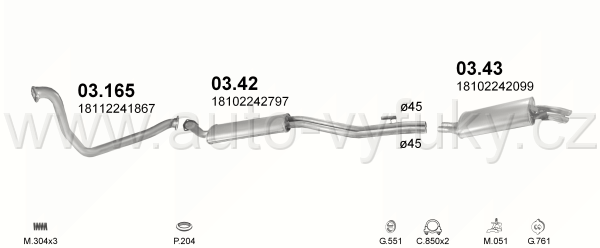 Sběrné potrubí , kód: 03.165 Příklad použití: BMW E30 87-88 2.4TD, kódy Bosal Walker aj.: 08.1013 886-145 19.56.01 140028 16011 18 11 2 241 867