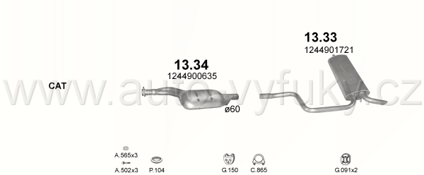Tlumič výfuku koncový , kód: 13.33 Příklad použití: Mercedes 124 85-96 2.0-3.0 24V/3.0D kombi, kódy Bosal Walker aj.: 01.041 28.7048 278-235... |