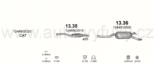 Tlumič výfuku střední , kód: 13.35 Příklad použití: Mercedes E250-W124 2.5 D SDN 93-95, kódy Bosal Walker aj.: 28.6024 175-009 48.57.06 01.59240... |