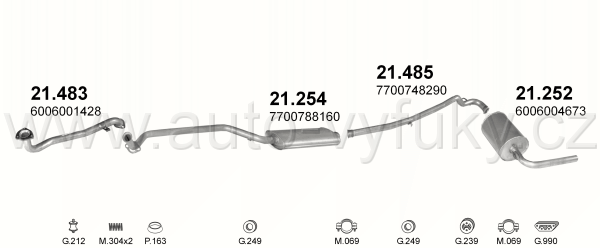 Trubka střední , kód: 21.485 Příklad použití: Renault Trafic 2.5D 03/89-95/07/94-10/97 LWB 3200mm, kódy Bosal Walker aj.: 890-871 01.40252 7700748290 |