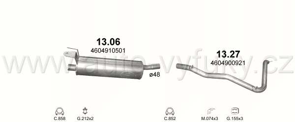 Trubka koncová , kód: 13.27 Příklad použití: Mercedes 200 GE, 230 G/GE, 240/250/300 GD Diesel, kódy Bosal Walker aj.: ME.92.08 130091 4604900921... |