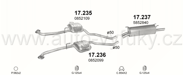 Tlumič výfuku koncový , kód: 17.237 Příklad použití: Opel Omega B 2.5i V6 kombi kat 94-, kódy Bosal Walker aj.: 185-013 07.295.86 P4533 21.185 GM178P... |