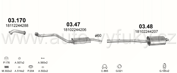 Tlumič výfuku střední , kód: 03.47 Příklad použití: BMW 325 2.5TD 2.5TDS 90-99, kódy Bosal Walker aj.: 08.6031 279-195 01.50012 18913 18 10 2 244 206...
