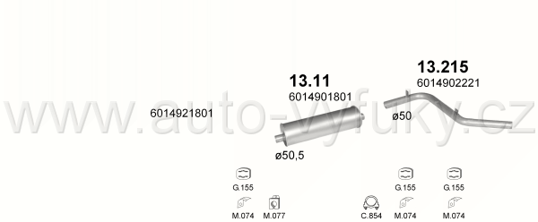 Trubka střední , kód: 13.240 Příklad použití: Mercedes 208D-410D 91-95 2.3/2.9D, kódy Bosal Walker aj.: 02.033 02.015 768-391 52154 85.16.52 17651... |