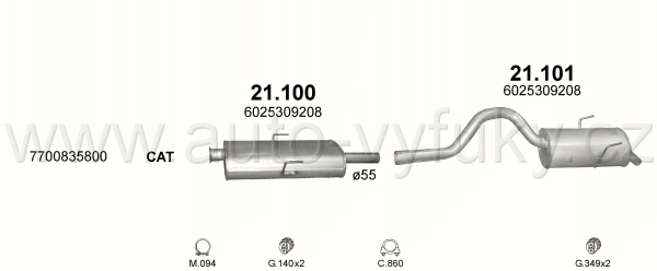 Tlumič výfuku střední , kód: 21.100 Příklad použití: Renault Espace III 3.0i V6 05/96-10/02, kódy Bosal Walker aj.: 22530 6025309208 e3 03 11076 |